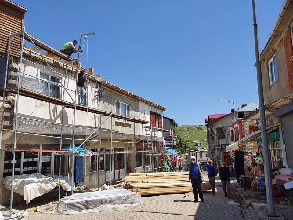 Ordu Kabadüz Çambaşı Yaylası’nda büyükşehir belediye ekipleri tarafından binaların cephesine ahşap giydirme ve mantolama çalışması yapılıyor.