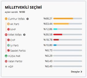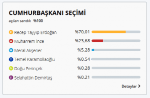24 Haziran 2018 Cumhurbaşkanlığı ve Milletvekilliği Seçimi resmi olmayan sonuçlarına göre Mesudiye’de oyların dağılımı şu şekilde olmuştur.