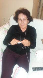 Şiş.İki çeşittir.Çorap şişi çengelli olur.Düz olanları örgü şişidir. Resimde şişe ile örgü örülmektedir.