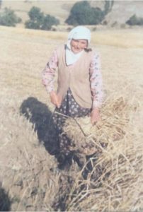 Ekin biçmede bir elin tutubildiği ekin demeti Ayaktaki kişinin elindeki pırmıttır.Solda Yeveli mahallesinden Zülali Çakır teyze elinde pırmıt .bizlere maziyi hatırlatıyor.
