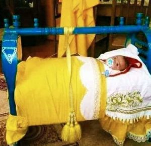 Bebeği beşiğe bağlayan kuşak.Uçlarında çubuk vardır.Çubuklar birbirıne bağlanarak,bebek beşiğe bağlanır. Sarı kuşak yörektir.